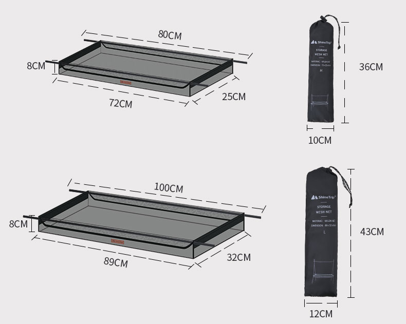 Packed Size 收纳尺寸: 36 x 10 x 5cm(M), 43 x 12 x 5cm(L)